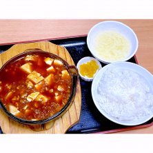 千葉県松戸市 松戸駅西口付近に有る居酒屋の店、ラーメン居酒屋 酒場 大都会のランチメニュー、四川風麻婆豆腐定食。 鉄板で焼いた麻婆豆腐、御飯、スープと漬物がセットになった定食。 麻婆豆腐はもう少し濃厚なコクが欲しかった。味は至って普通かな。この店は色々なメニューが安く食べられる所はええ。昼飲みしている人も多かった。実家に居る間に試しに利用してみた。