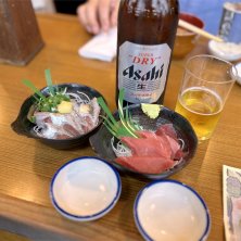 一人立飲み。お客さんたくさんいました! 二つ隣のおじいちゃんが私をガン見してました(ー ー;) 怪しいものではありません… しまあじ刺しと牡蠣酢、とっても美味しかったです(๑>◡<๑)
