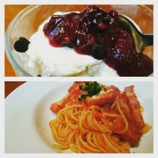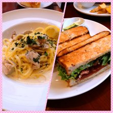 今日はお外ランチでした♬ 珍しいレモンクリームパスタと私が食べたローストビーフとリンゴのサンド(・ω・)ノ サンドは甘辛?で美味しかったです!