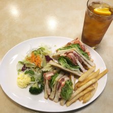 ロイヤルのBLTサンド。 このお店初めて入ったかなぁ〜、サンドイッチ美味しかった。 ホットコーヒー付きって書いてあったけど、店員さんがホットでいいですか?って聞くからアイスもできるのって確認したらお代わりできないけどアイスコーヒーにできますと。 出てきたアイスコーヒー大きすぎでお代わりできなくても十分だったー( ̄▽ ̄)