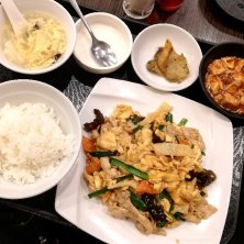 スタジオ練習の後にいつもの中華とビール🍺 2人で4品オーダーしました。これはトッポギと野菜のピリ辛炒め、豚肉とニンニクの芽の炒め物。 その他はナスとじゃがいもの炒め物、イカゲソの揚げ物。全部美味しかったです😋とどめにゴマ団子☺夕飯食べられません。