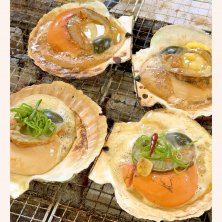 漁港の牡蠣小屋にて…生帆立🤣 肉の日のお出かけ