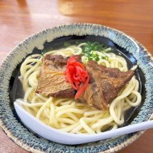 ドラゴンセット950円 宮古そばの上にピリ辛野菜あんかけとソーキ。 チキンタルタルのセット。