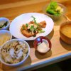 友達のCafeです♪ 菜の花と豆腐ハンバーグ!ランチはこれにスープ、コーヒー、お菓子がついて¥800-!!満足!!