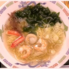 今日のお昼は盛岡駅中の南部いろり庵の磯ラーメン🍜でした。 海老にホタテにカニカマ?ワカメ等々磯の香りたっぷりのあっさり塩味のラーメンでした。 ご馳走さまでした。😄👌