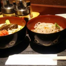 盛岡三大麺セット。 (右にいた冷麺が見きれてしまいましたが…。) わんこきょうだいのお碗入りでかわいい!!! リアルわんこきょうだい♪