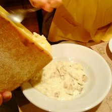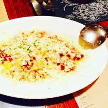チーズづくしで幸せ♡くるみとと菜の花のリゾット。チーズの中でまぜまぜするやつ♡
