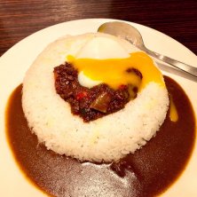 ドライカレー 1100円 「合い挽肉と野菜・果物で作ったドライカレーと通常のカレーソース、"2種類の味が一緒に楽しめる"うれしい一品。」 ドライカレーがフルーティーで美味しかった〜! 具が小さくて柔らかくてレーズン入ってる点でとても好み。