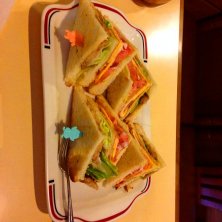 久々に来ました。 今からランチです。 クラブハウスサンドとカフェオレ〜(((o(*゚▽゚*)o)))