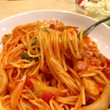 元コロラドの喫茶店でナポリタン。サイフォンドリップのコーヒーとセットで980円。いいな。