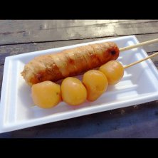「牛タン串」 先週ですが、宮城への旅行で食べた一品です。 高速道路のサービスエリアの露店のものですが、さすが本場!美味しかったです。 あ、このSAはまだ福島だった… でも、これで950円は高いなぁ。