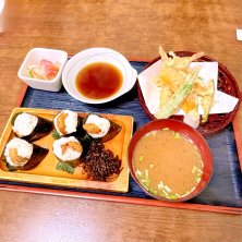 今日のお昼はテレビ見てて天ぷらが食べたくなって💨💨 調べたら、2日から営業してたので早速💨💨 ・月定食 天ぷらも天むすも食べれるのはこの定食か1番なのでいつも😁 梅干しの天ぷらも別にオーダーしました〜 久々に行きましたが、熱々で美味しかった🎵