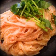 昨日の〆ゎ明太クリーム素麺。お腹いっぱいだったけど常連さんのオススメでつい(^_^;) 想像通りうまうまでした♡