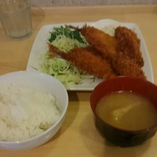 手近な定食。カキフライ3個とアジフライ2枚。 650円ならこんなものか。