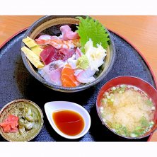 千葉県松戸市 松戸駅の東口付近に有る和食の店、丸吉のランチメニュー、海鮮丼。 色々な魚介類を乗せた海鮮丼で、味噌汁、漬物がセットで付く。 この店のオススメメニューやが、味は普通で他の定食にすれば良かったと思った。