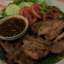 豚首肉の炭火焼、コームーヤーン。他店と比べて肉厚なので、歯応えが有り、ステーキです。