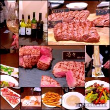 昨夜のクラス会 先生のお知り合いのお店にて。 スクールでは、ニューワールドのワインのお勉強。よって持ち込みは、ニューワールドのワイン🍷✨ サラダ2種、ラクレット、そして待望のお肉❤ ✦フィレ ✦芯々 ✦カメノコウ ✦ランプ ✦イチボ 全て40日間熟成されたお肉です。 レアで出てきて、好みでアツアツに焼かれた石に乗せてジュージューと焼きます。 それに、わさび、黒い岩塩、鹿児島のお醤油、辛味ダレで楽しみます。 特に、フィレが好みでしたー😍 どれも、柔らかく美味しい❤ 続きます↓ ↓