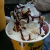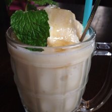豆乳入り、バナナとりんごにジンジャーのスムージー。 不思議な組合せだけど、見事にマッチ。身体に良さそうだ。