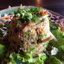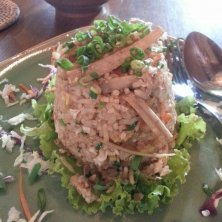 チェンマイ大学構内の、お洒落なベジタリアンカフェで、ランチ。 ごぼうと雑魚の和風チャーハン。新鮮なごぼうがコリコリ美味しいです。雑魚も入って、懐かしい味で大満足。