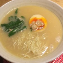 鶏らぁあめん。鶏白湯を出す店が増えてますが、スープの味の深さとコラーゲン感は、ここが一番じゃないかと思います。具が、玉子半個とニラ、ほんの少しの挽肉だけなのが寂しいですが、また美味しいスープを吸いたいときに。