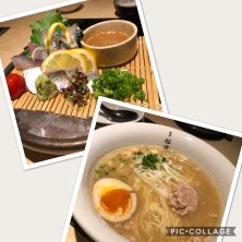 キャナルシティーに寄ったついでに『松すけ』で晩ご飯。 ゴマサバと鶏ラーメンは、毎回頼んでます…^^; 今日は、お店の方が、サプライズで、デザートプレート出してくれて…感激!! ゴジラのプロジェクションマッピングを見て帰りました〜。