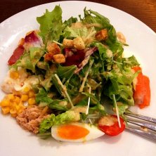海老のアメリケーヌカレー🍤とリコッタチーズのパンケーキ🥞ランチ** 今日は仕事関係の勉強会の後、同僚とランチしました(^^) こちらも久しぶりでしたが、カレーとパンケーキ、美味しかったです。 コーンスープはお代わりOKでした♪ クリーミーで美味しかったです。 昨日、今日と贅沢ランチだったので、少し節制しないと。。f^_^;💦