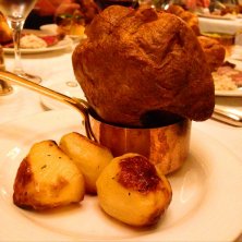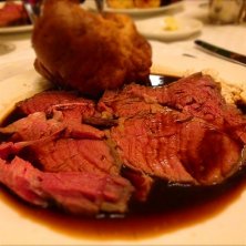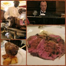 英国旅行振り返り ようやくさよならディナー! ローストビーフと言えばここ。 色々新しいお店もできてますが、やっぱりロンドンに来たらここでしょう~! 神田に行ったら藪そばみたいな感じ。 伝統のスコットランド産熟成肉のローストビーフ、ホースラディッシュ添え。 カーバーが鮮やかに切って乱雑に盛り付けます!(笑)! 付け合わせはヨークシャープッディングですね~!(*^^*) イギリスでは、ポップオーバーじゃ無いですよー! いかにものイギリス紳士のピアノ生演奏で、文句無い晩餐でした!