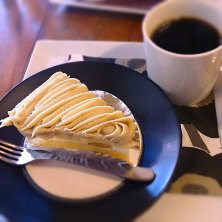 モンブランは今日は終わってたからテイクアウトで。くるみ入りチョコケーキ。