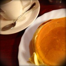 朝からホットケーキ♪ ちょっと波が過ぎた時間帯なので出してくれましたっ!感激☆*:.。. o(≧▽≦)o .。.:*☆