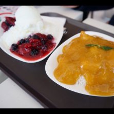 ベリーピンスとマンゴーピンス。せっかくお粥で温まった体を冷却… 美味しいからオッケー!