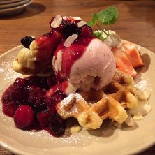 今日はお散歩がてら初めて渋谷から新宿まで歩いたよ(笑) 雨の中1時間かかった←キチガイ? でも北参道とか素敵だったな~♡ 新宿で本当はオリジナルパンケーキハウスのパンケーキを食べに行こうとしてたんだけど、行ったら大行列😂😂 何軒か他のカフェ電話するもどこも並んでるとの事😓 仕方なく空いてる瓦カフェへ(笑) 私が食べたストロベリーワッフル980円、バニラアイスとホイップとブルーベリーが中に入ってて普通に美味しかった😆 美味しくは無かったけど、いちごがとっても可愛くカットされてた😚🍓