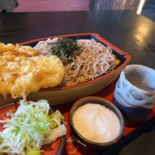今日はいい天気です!^ ^ イカ天の天麩羅そばに山芋追加で。