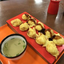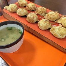 焼き立ての明石風たこ焼きは周りはカリッと中はとろと熱々。中はタコのみ。玉子の風味豊かなシンプル味わい。 周囲の地元の方はお好みソースを付けてお出汁に投入ですね。上品さとコテコテ味のミスマッチが良い感じです!