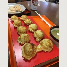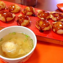 本日のディナーは、姫路タコピアさんの、明石焼き!あまりのデカさに、しびれゔぁ!ふかふかの焼き上がりを出汁につけると、う、うみゃ〜!