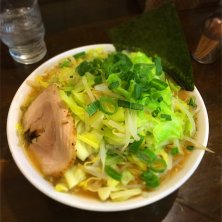 前から一度来てみたかったガード下のお店。 スタミナラーメン 930円 麺も野菜も少なめで。卓上のおろしニンニク少し入れて。極太麺がモシャモシャ 豚骨醤油 旨旨!