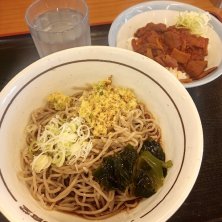朝食。 久々に納豆食べたくて、納豆たっぷりの山田うどんの納豆定食。