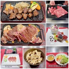 夜ご飯🌙🍚 ✨伊賀牛霜降りリブロースサイコロステーキ(私) ✨伊賀牛霜降りリブロースステーキ(ダンナ) ✨コースのお料理 *生ハムカルパッチョ *牛刺し *ガーリックライス *スープ *サラダ *デザート 母の誕生日、ダンナの誕生日、我が家の記念日 毎年恒例のまとめてお祝い会㊗️ 今年は母が急きょ入院してしまったケド 予約してあったし、ダンナと2人で ステーキ食べてきました!