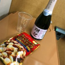 泣きながら、新幹線の中です。 このお酒はパパです。