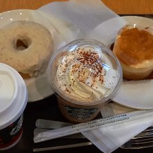 コドモとスタバへ。コドモは初めてだったのではしゃいでいたけど食べ物も飲み物も甘くて、やっぱり麦茶が良いと。