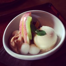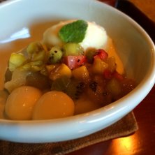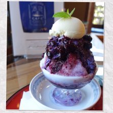 酒々井まがり家でデザートを。 自家製ブルーベリーソースのかき氷。ブルーベリーたっぷりです。