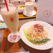 麻辣担々まぜ麺 鉄観音ミルクティー 思ったより辛かったけど美味しかった! 塩分が身体に沁みる〜