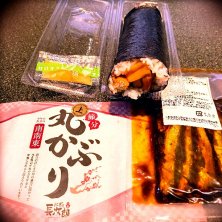 丸かぶり 690円、三種の押し寿司 1280円など 前日予約で5%引き