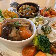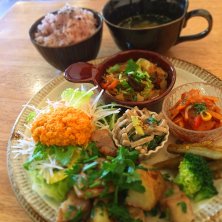 ランチはアンルポで モーニングでは何度か行ったことあるのですがランチは初めて! 選べるメインは高野豆腐のフライにしました 夫は鶏肉の塩麹炒めだったかな、お肉のメインにしてました 写ってないけどご飯か自家製パンか選べたので私はパンに あと野菜スープがついてました 野菜たっぷりで体に優しい料理の盛り合わせ 店内はほとんどが女性でした 食後にこだわりドリンクや手作りスイーツも頼めるのでお喋りしながらのんびり過ごせる感じの温かい雰囲気のお店です
