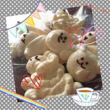 今日は午後からご近所のほっこり素敵なカフェ"un peu do repos"(アンルポ)さんの一角をお借りして、パソコンサポートでした。 ロールケーキとほうじ茶ラテを頂きましたが、写真撮らなかったので、子どもたちへのお土産に買ったかわゆい♡メレンゲクッキー。 行ったら、どの席にも知り合いがいたよ。フフフ( ^ω^ )