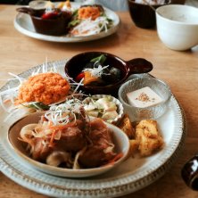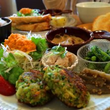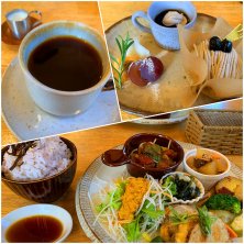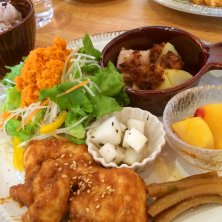 お豆腐とれんこんのはさみ焼き 人参ドレッシングのサラダ ベジカレー その他副菜 ほうじ茶のモンブラン 浅煎りコーヒー お野菜のスープもありましたが撮り忘れ メインはお肉か野菜、ご飯かパンかが選べます 初めてのお店 女性が多い人気店、予約した方が良いかも 野菜たっぷりでどれも美味しかったです✨