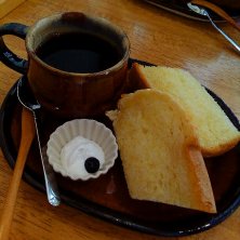 テニス教室後 腹へったー! という夫に連れていかれたカフェでモーニング パンだけついてるセットにしました パンは自家製 コーヒーは深煎りを選びました とゆーか多分私、今二日酔いなんじゃないかな…