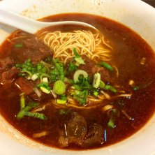 知人の店で半筋半肉の牛肉麺(大辣) と〜っても辛いけど、と〜っても美味しい!