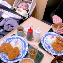 ねぇ ママとばぁば 何食べるの?? ヒレカツ定食 美味しく頂きました😋💕