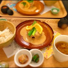 限定20食☆酒粕のクリームソース 鶏つくね御膳☆ レンコンのサクサクした食感のつくねにコクのあるクリームソースが美味しい☆ 今日はミル友のいくちゃんと♪ めちゃ可愛いくて素敵な方です(≧∇≦)