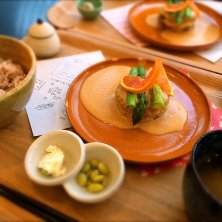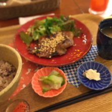 豚肉のはちみつ味噌漬け定食♪ オフィス引越しから、初の文房具カフェ。